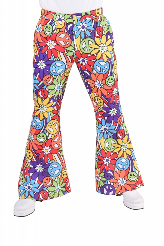Thema: disco broeken, flower power, hippie broek, 70’s party, stretch broek, verkleedkleding, themafeest
