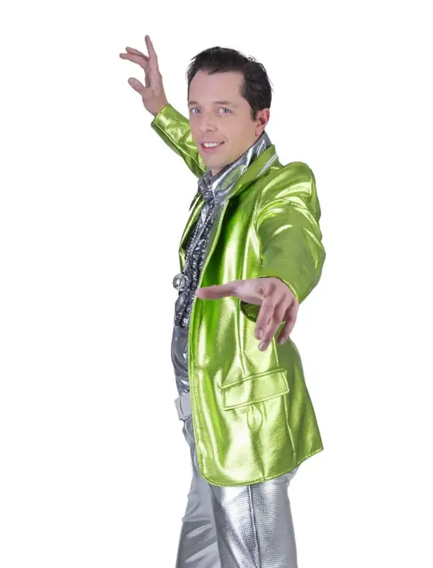 Thema: zilveren kleding, colbert zilver, zilvere kolbert, glitter en glamour kleding, themakleding zilver, goedkope zilveren colbert, disco colbert, silver