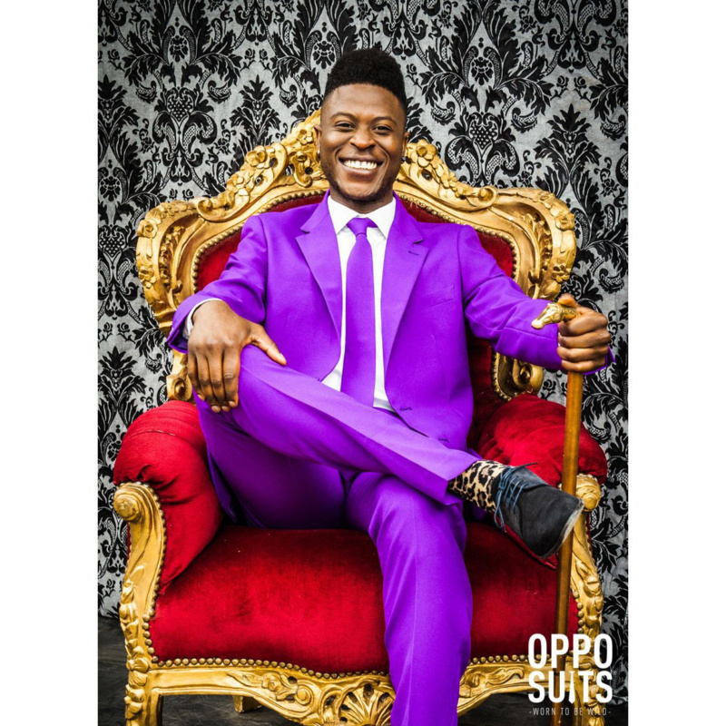 Paarse opposuits kostuum