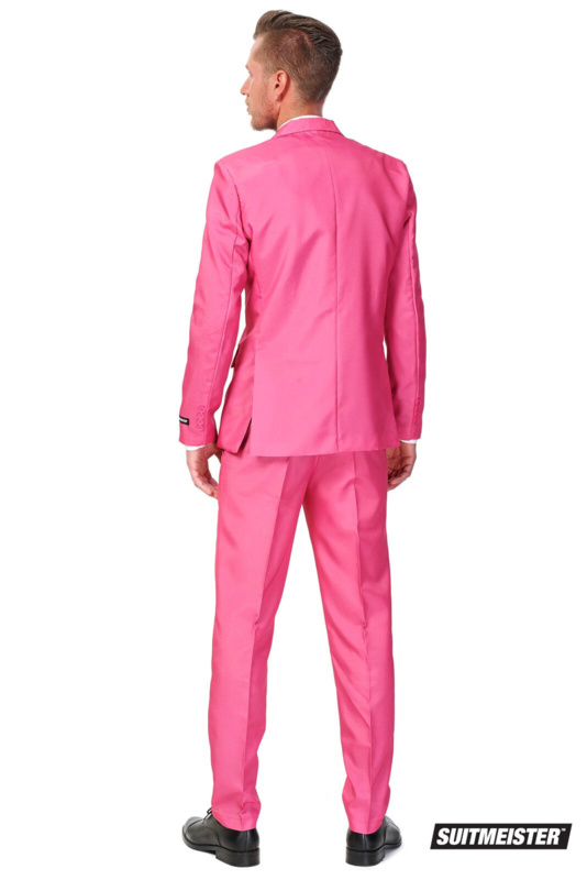 Thema: smoking, themafeest, amerika, maatpak, kostuums, stijlvol. pink suit, pink smoking, pink panther